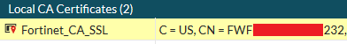 Verify that the FortiGate's "Fortinet_CA_SSLProxy" Certificate is displayed under System\Certificates\Local CA Certificates.