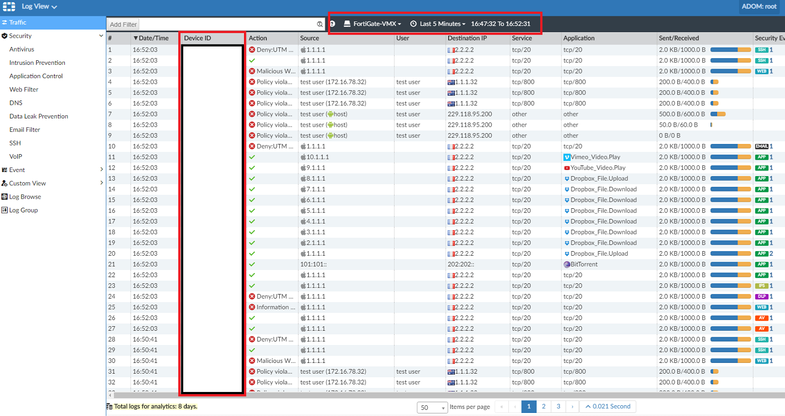 round-trip min/avg/max = 0.8/1.1/1.4 msGenerate test logs on the FortiGate VMX Instance: